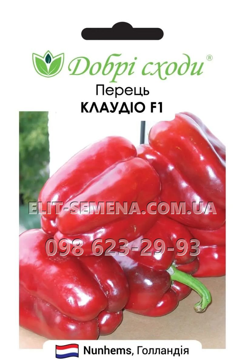Насіння перцю Клаудіо F1 представлено селекцією Нунемс. Перець Клаудіо F1 - ранньостиглий гібрид солодкого перцю. Вегетаційний період 72-80 днів. Призначений для вирощування у відкритому ґрунті, плівкових і скляних теплицях. Рослина міцна, прямостояча, добре розвивається навіть в стресових умовах. Перець Клаудіо F1 може одночасно формувати до 12 однорідних плодів середньою масою 200-250 г і товщиною стінок 10-14 мм. Плоди кубовидні, видовжені, чотирикамерні, дозрівають з темно-зелених до темно-червоних. Вони стійкі до сонячних опіків, відмінно транспортуються на далеку відстань та довго зберігають товарний вигляд